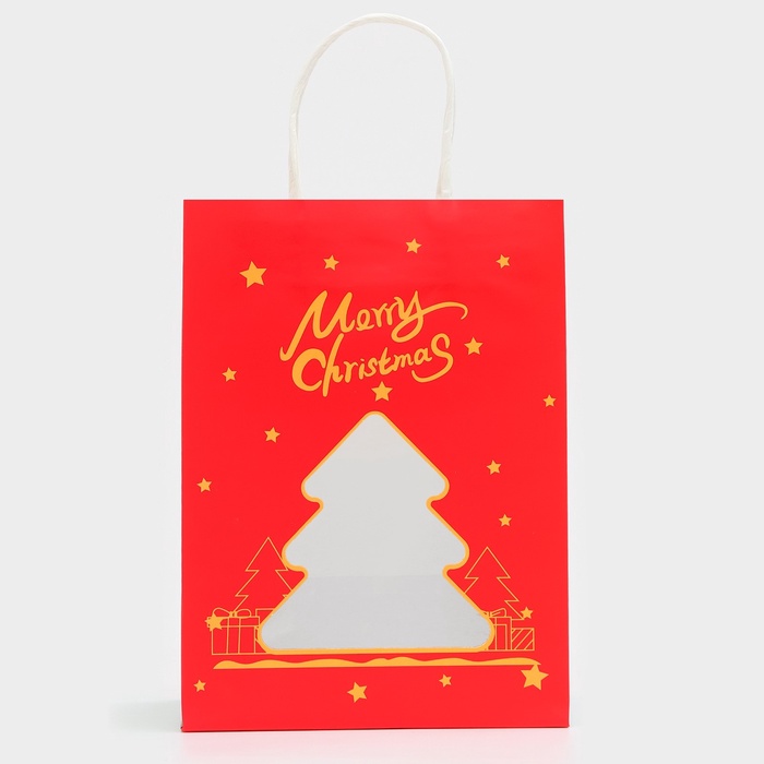 Пакет подарочный бумажный с окном «Ёлка» 19×26×13 см, крафт красный — Характеристики