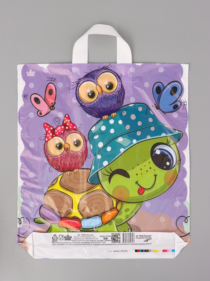 Пакет подарочный «Черепашка» полиэтиленовый, с петлевой ручкой, 42×38 см 37 мкм — Характеристики