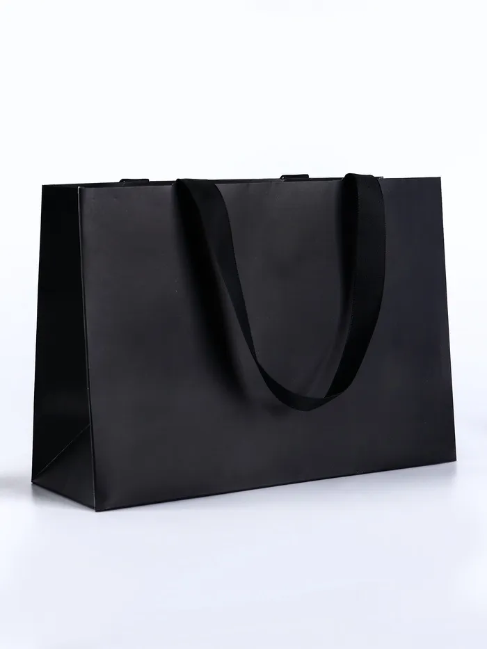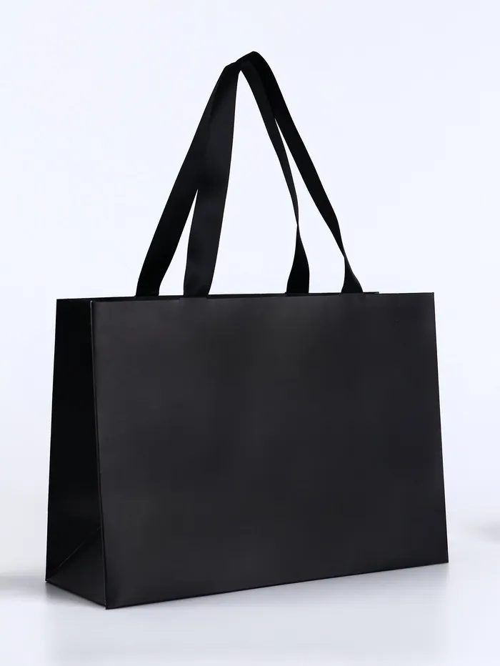 Стильный чёрный подарочный пакет для особых случаев. Универсальный дизайн и удобная форма делают его идеальным выбором для праздников, таких как 8 Марта, День рождения или 14 Февраля.