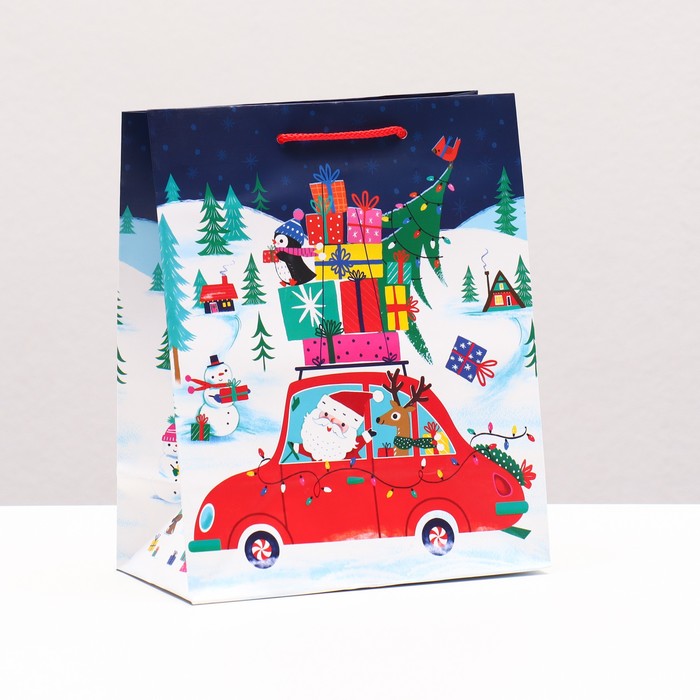 Пакет подарочный «Дед Мороз везёт подарки», 18×22.3×10 см