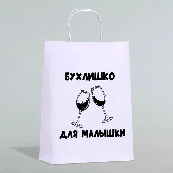 Шуточная упаковка для весёлых подарков! Крафт-пакет «Бухлишко для малышки» — оригинальный способ упаковать подарок с юмором. Плотная белая бумага с кручёным шпагатом выдерживает до 3 кг, а забавная надпись поднимет настроение.