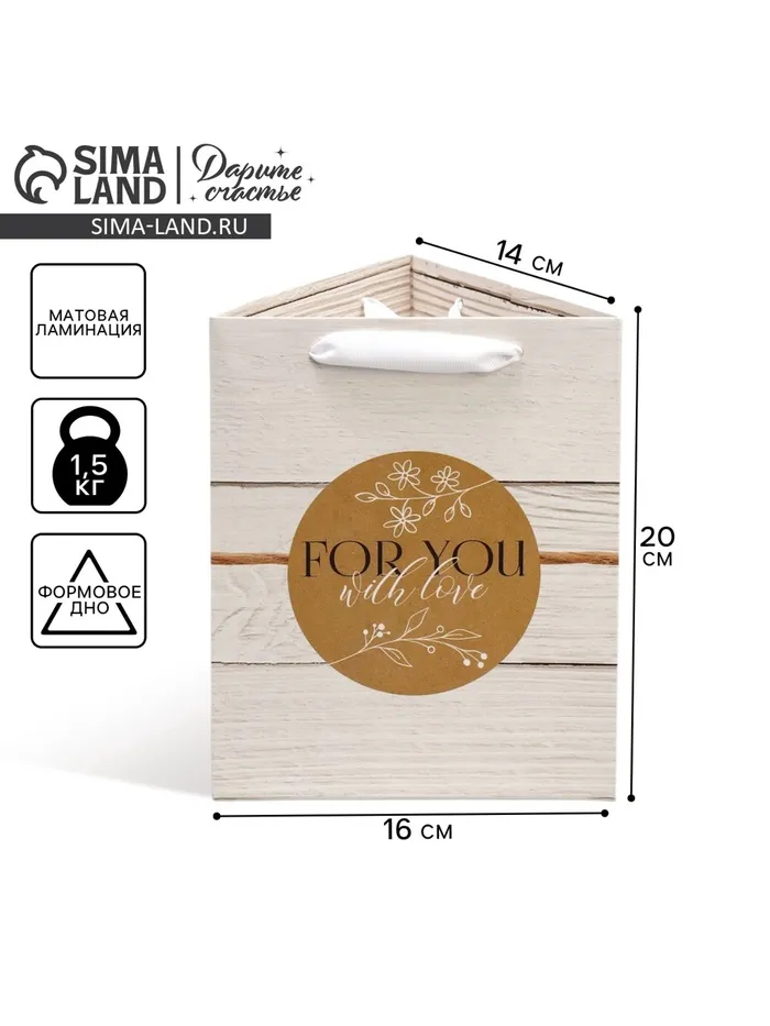 Пакет подарочный для цветов треугольный, упаковка «Для тебя» 16 х 20 х 14 см — Характеристики