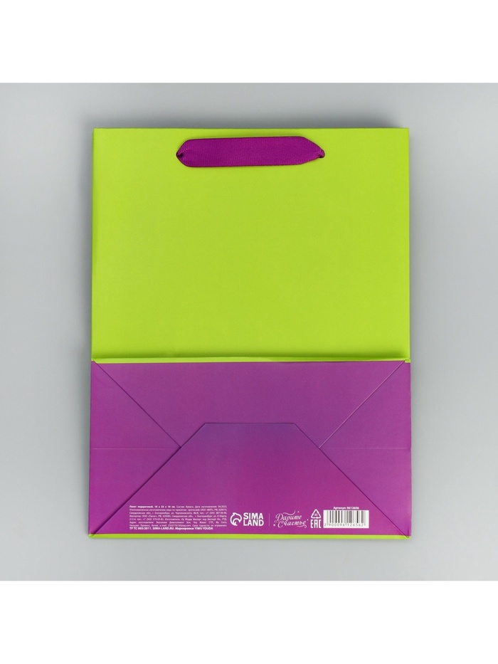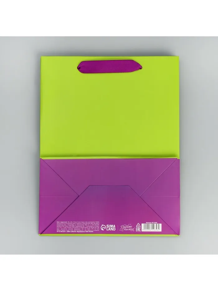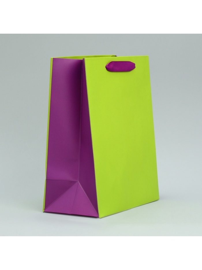 Пакет подарочный двухцветный, упаковка, «Салатовый-сиреневый», MS 18 х 23 х 10 см — Характеристики