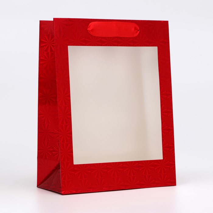 Пакет подарочный, фольгированный, упаковка, с окном, «Красный», S 23.5×18×8.5 см — Характеристики