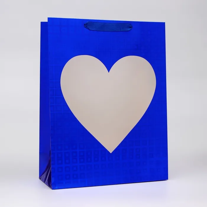 Пакет подарочный, фольгированный, упаковка, с окном «Сердце», «Синий», L 40×30×13 см — Характеристики