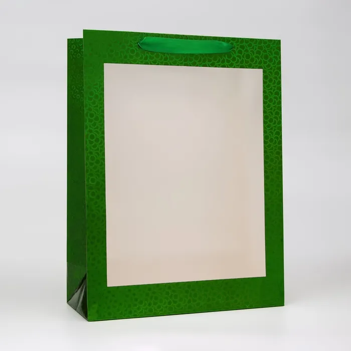 Пакет подарочный, фольгированный, упаковка, с окном, «Зеленый», L 40×30×13 см — Характеристики