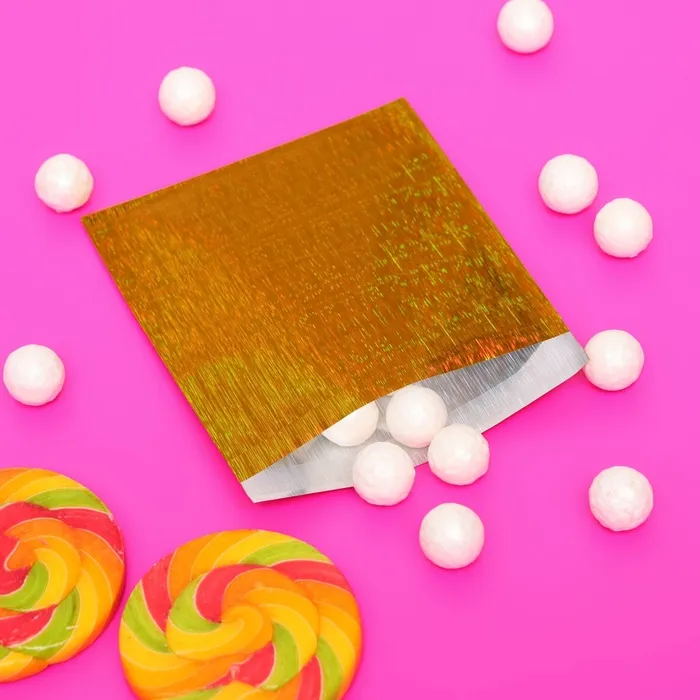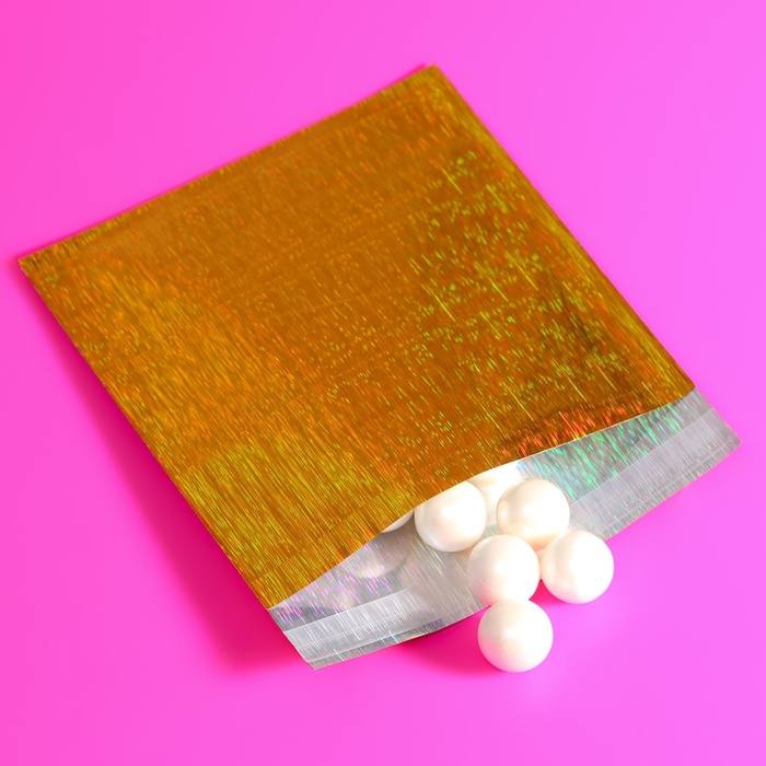 Голографическая поверхность пакета создает удивительную игру света и цвета, привлекая внимание и вызывая восхищение.