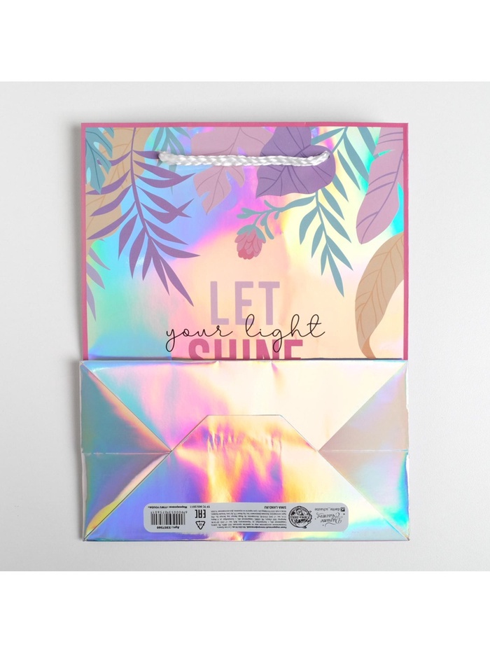 Пакет подарочный голографический, упаковка, Let your light shine, 18 х 23 х 10 см — Характеристики