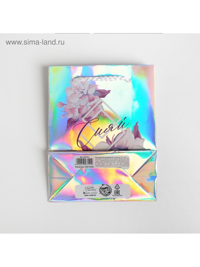 Пакет подарочный голографический, упаковка, « Сияй», 12 х 15 х 5.5 см — Характеристики