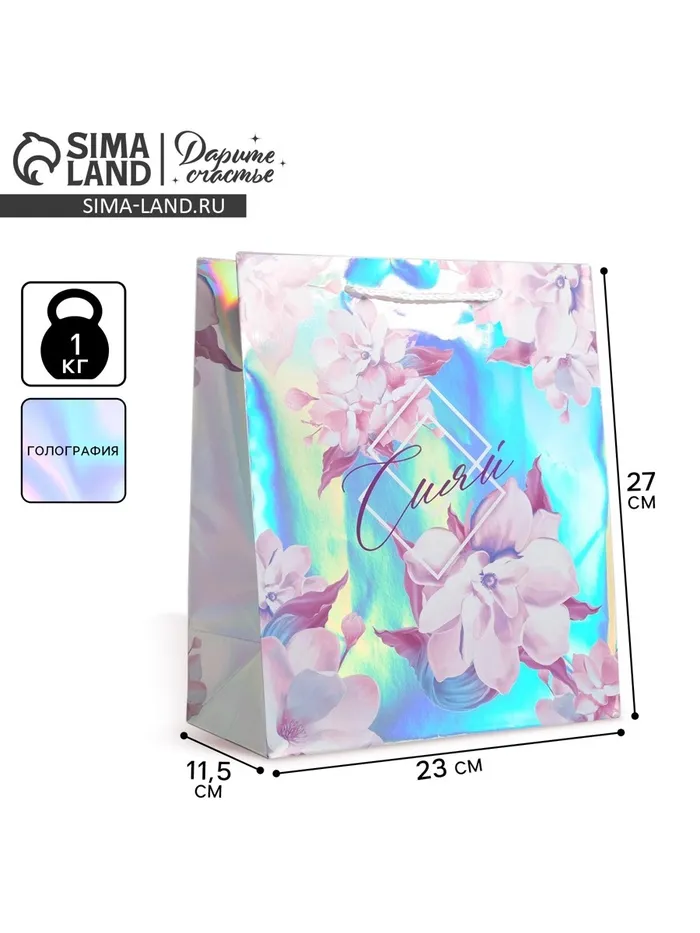 Пакет подарочный голографический, упаковка, «Сияй», 23 х 27 х 11.5 см — Характеристики