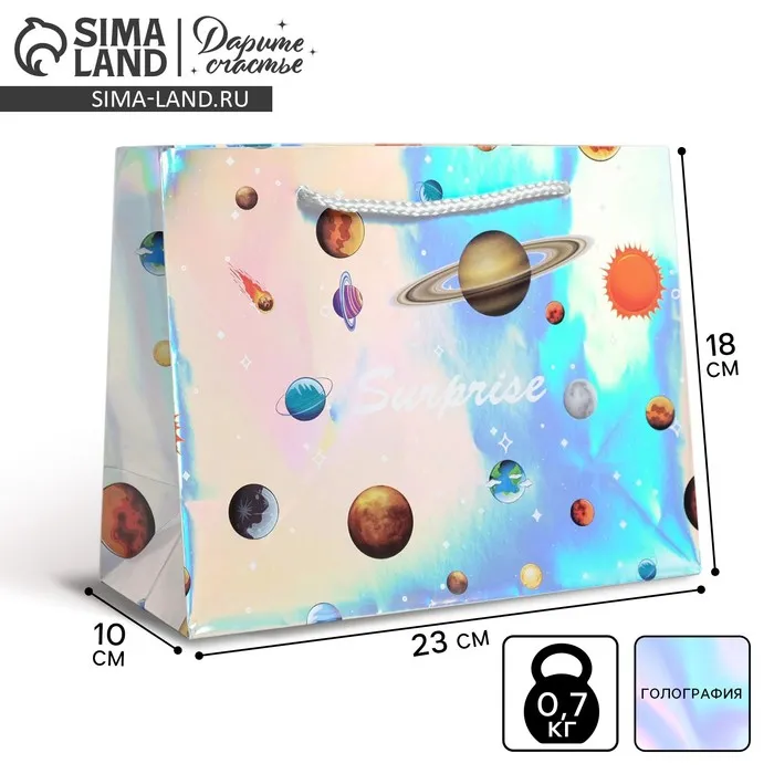 Пакет подарочный голографический, упаковка, «Surprise», 23 х 18 х 10 см — Характеристики