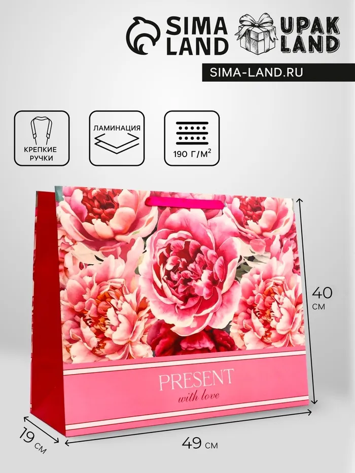 Пакет подарочный горизонтальный Present with Love, 49×40×19 см — Характеристики