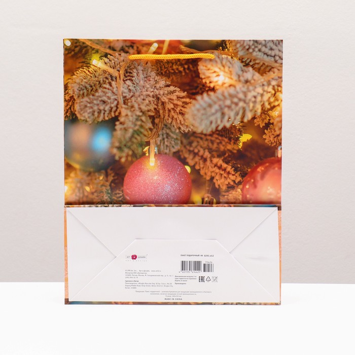 Новогодний подарочный пакет с ярким, красочным рисунком создаст праздничное настроение.
