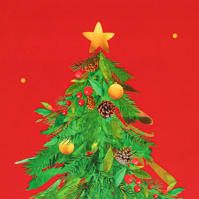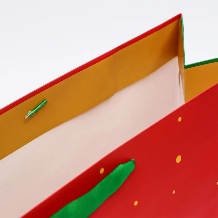 Пакет имеет плотную структуру и приятную на ощупь поверхность, что делает его удобным в использовании. Он украшен яркими новогодними узорами и изображениями, которые создают атмосферу праздника и волшебства.