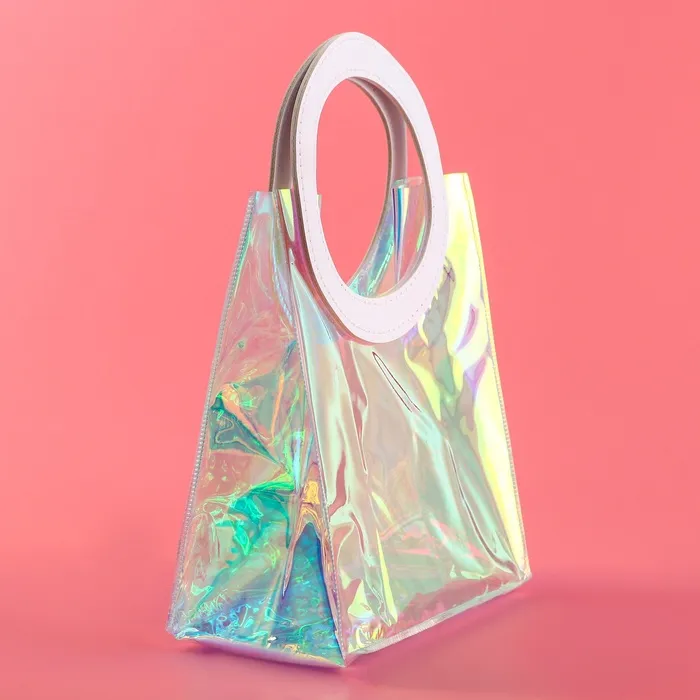 Этот подарочный пакет из ПВХ — настоящая находка для тех, кто стремится к уникальному и стильному оформлению своих подарков. Прозрачный материал с ирридисцентным эффектом придает пакету особую магию и очарование, играя светом и переливаясь всеми оттенками радуги. Такая упаковка не только привлекает внимание, но и создает ощущение таинственности, заставляя гадать, что же скрывается внутри.