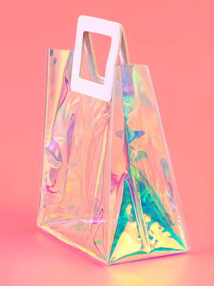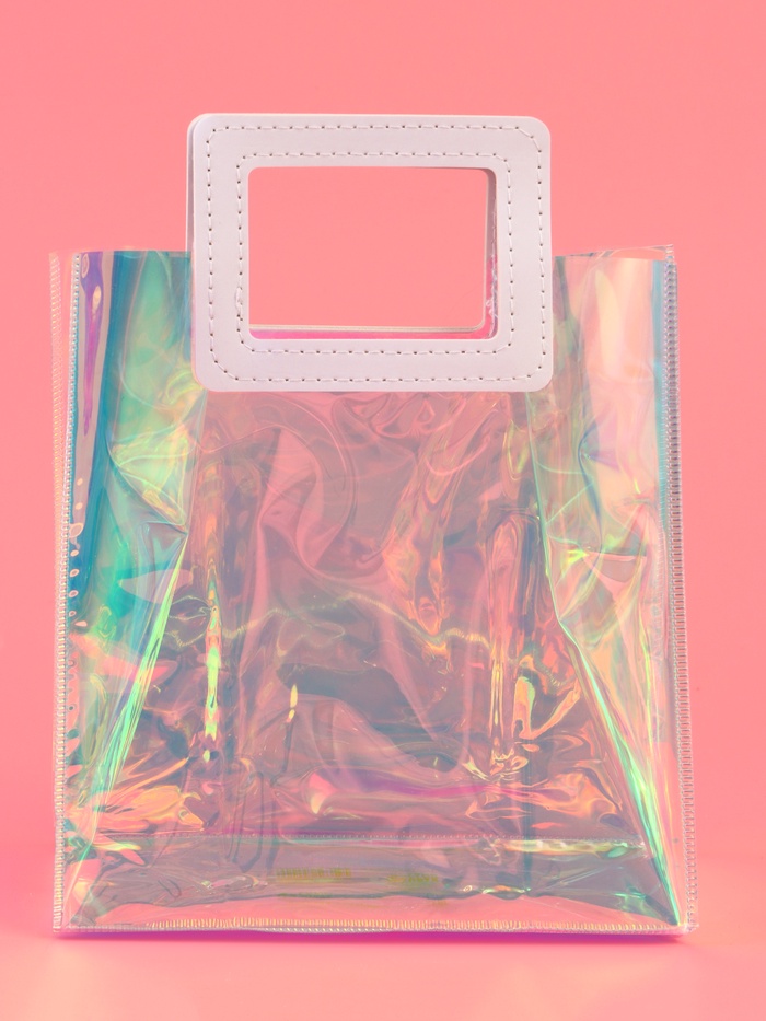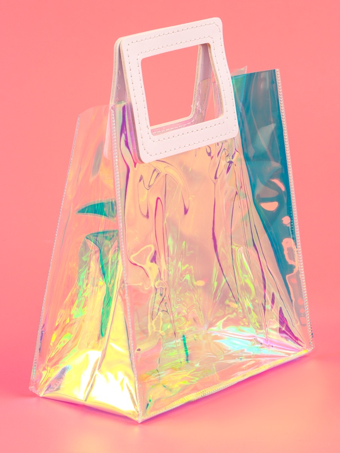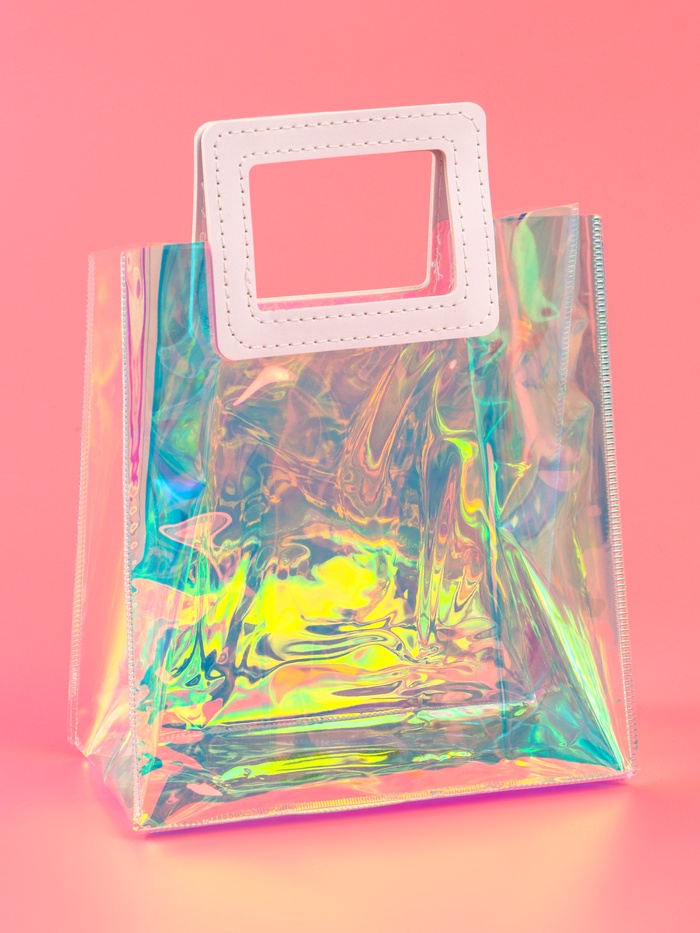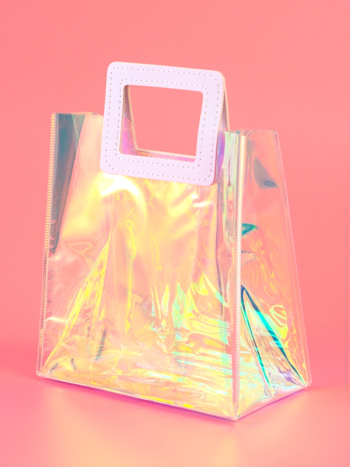 Пакет подарочный из ПВХ, иридисцентный, белый 20×18×10 см — Характеристики