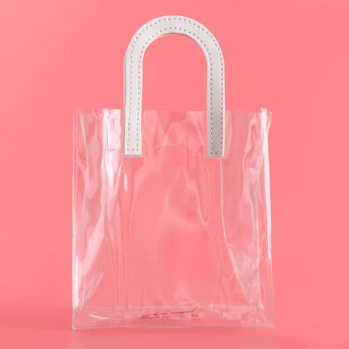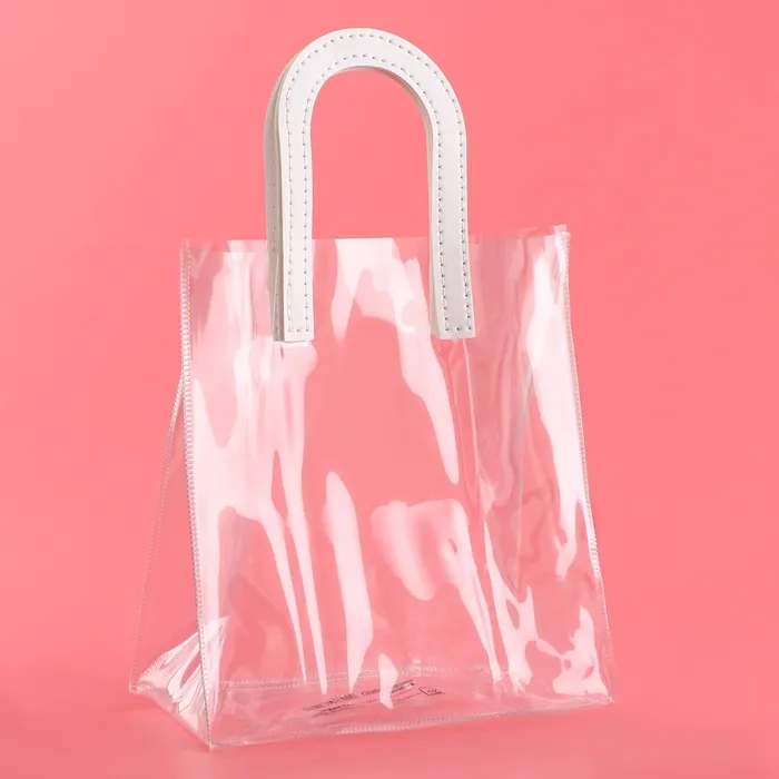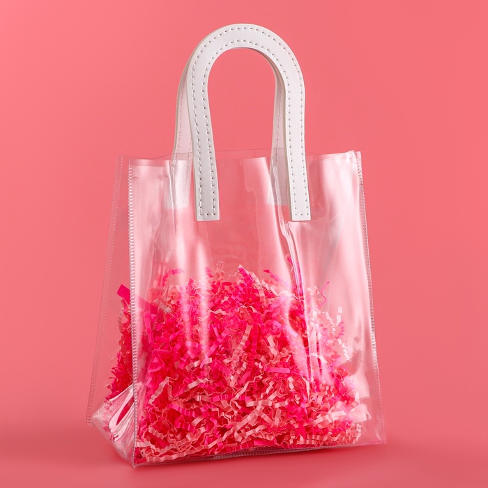 - Прозрачная сумочка с фигурной ручкой идеально подходит для различных видов подарков, начиная от косметики и заканчивая небольшими предметами интерьера.