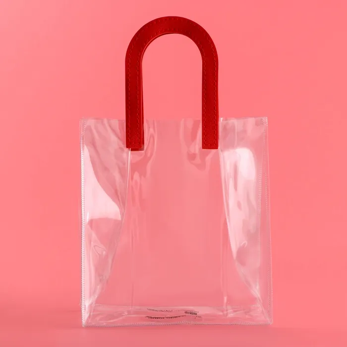 Пакет подарочный из ПВХ, прозрачный, красные ручки, 20×18×10 см — Характеристики