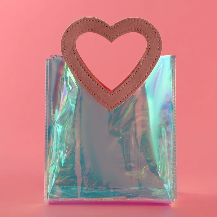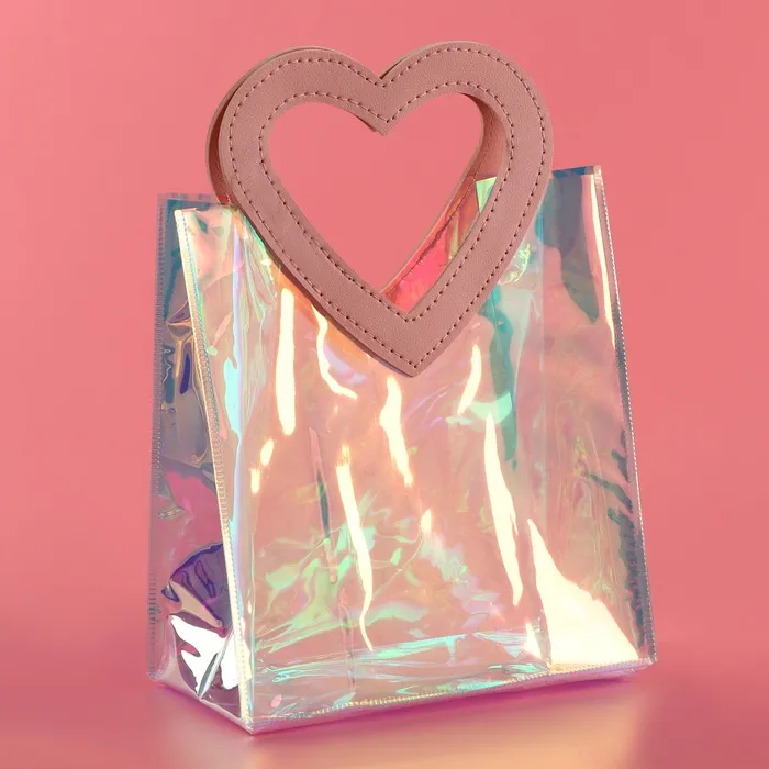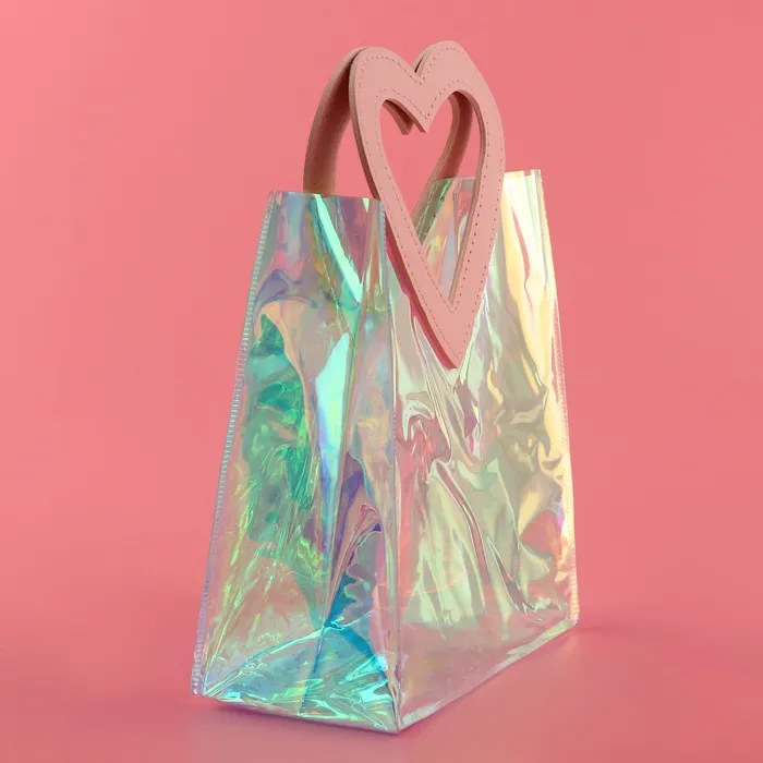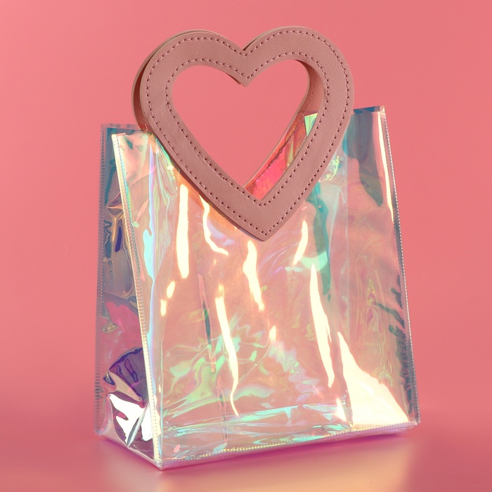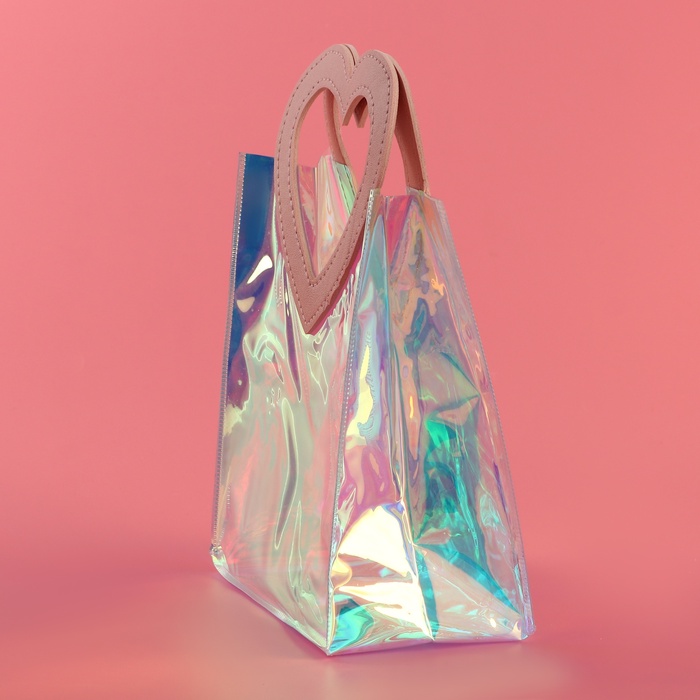 Пакет подарочный из ПВХ, розовый, ирридисцентный, 20×18×10 см — Характеристики
