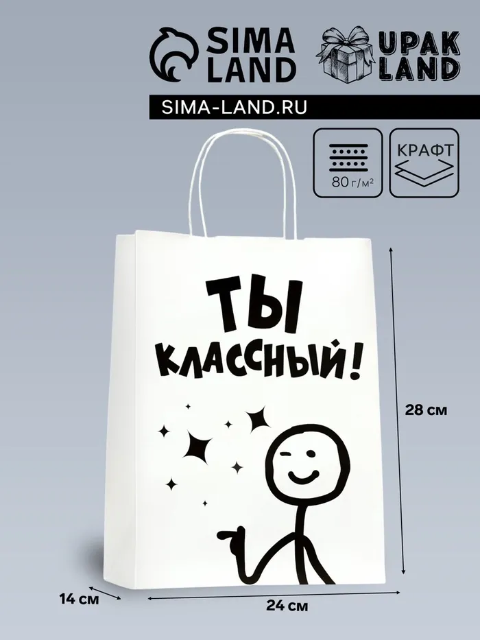 Пакет подарочный «Классный!», 24×14×28 см — Характеристики