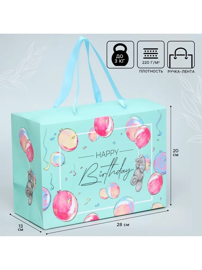 Пакет подарочный-коробка, 20x28x13 см «Happy Birthday», упаковка, Me To You — Характеристики