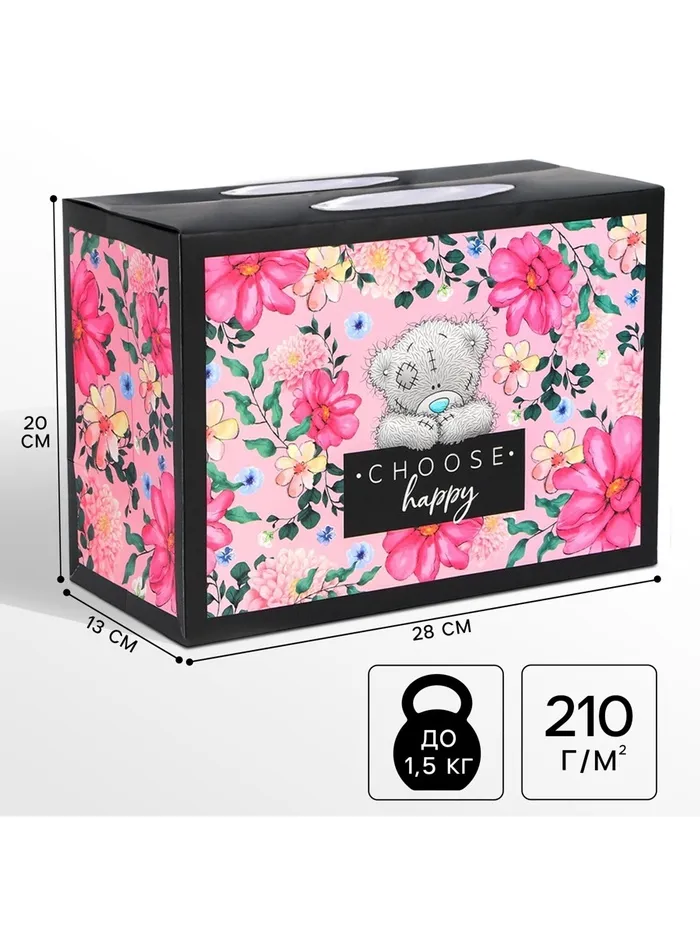 Пакет подарочный-коробка, 28×20×13 см Choose happy, упаковка, Me To You — Характеристики