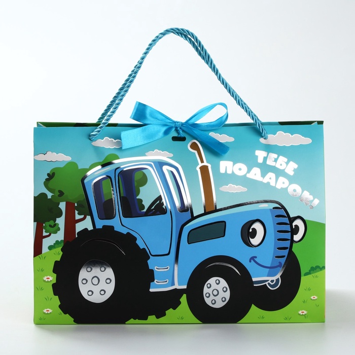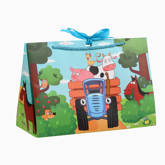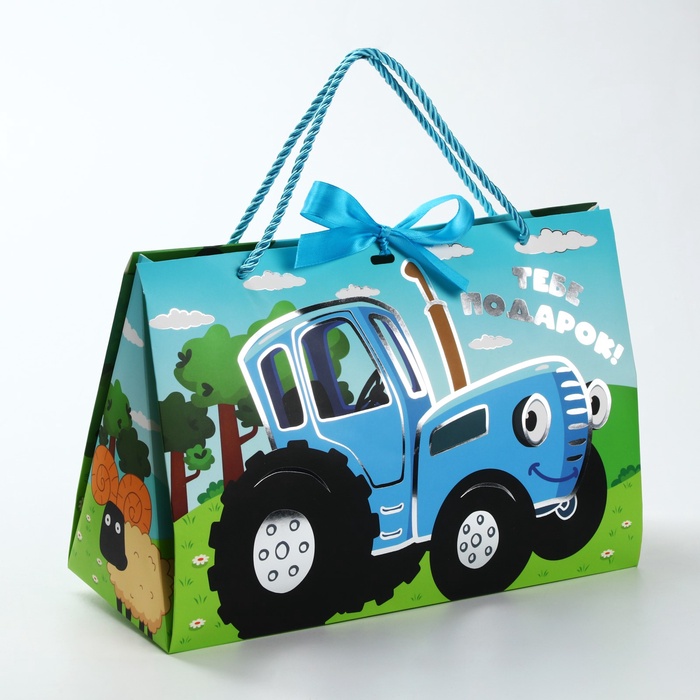 Пакет подарочный-коробка с тиснением, Синий трактор, 30х20х12 см — Характеристики
