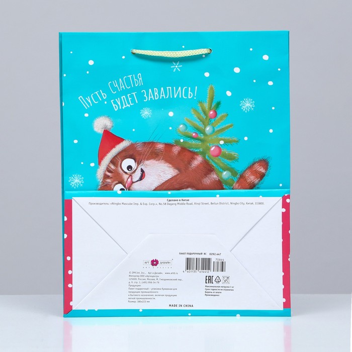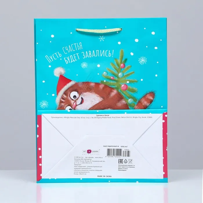 Новогодний подарочный пакет с ярким, красочным рисунком создаст праздничное настроение.