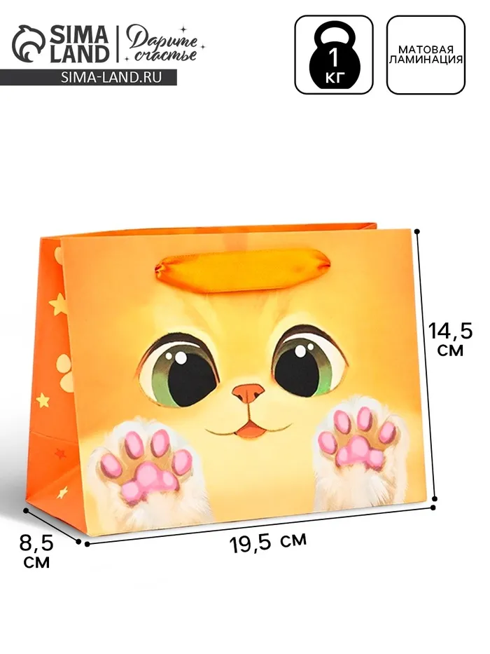 Пакет подарочный «Котик», 19.5 х 14.5 х 8.5 см — Характеристики