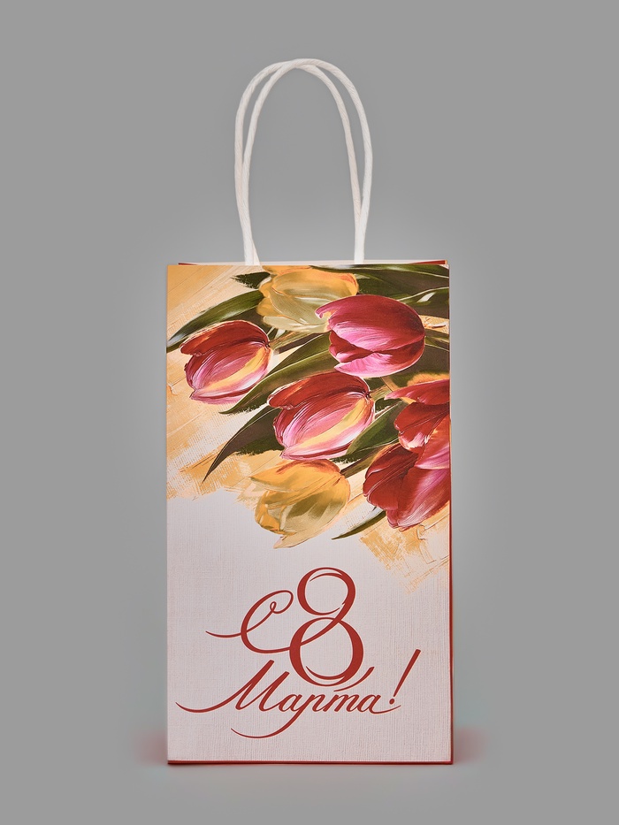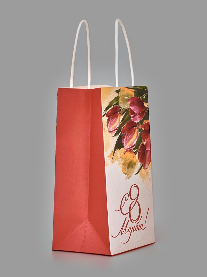 Пакет подарочный крафт «8 марта», 12×21×9 см — Характеристики