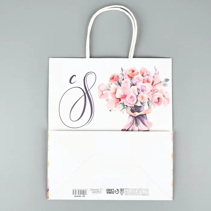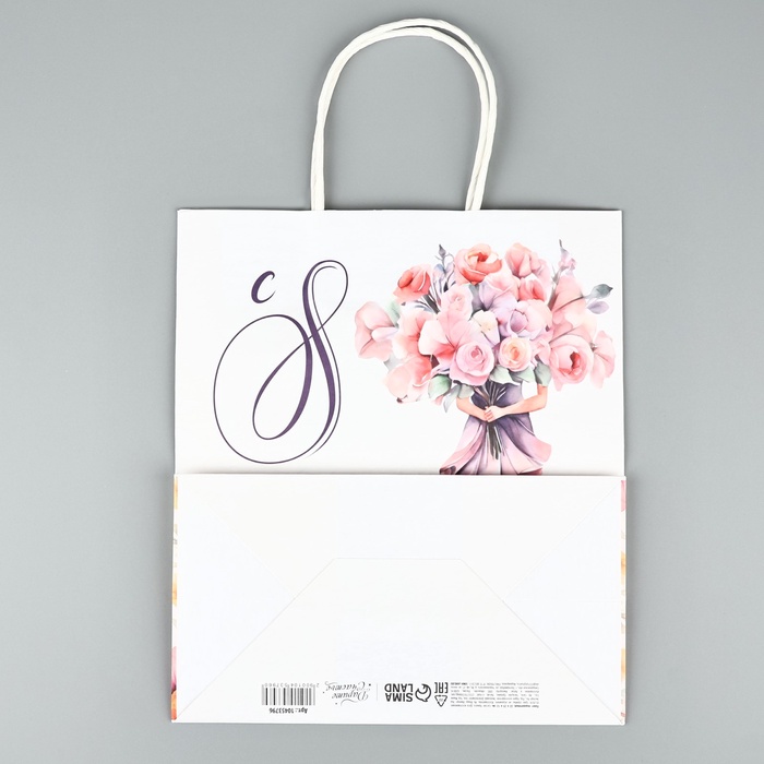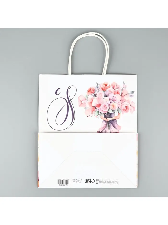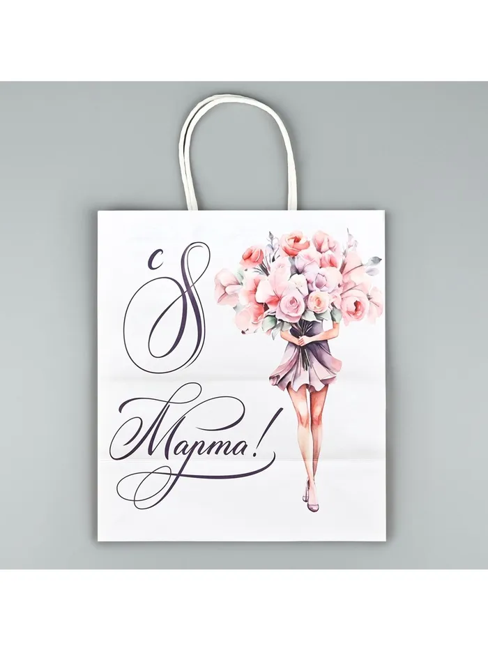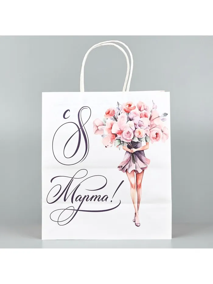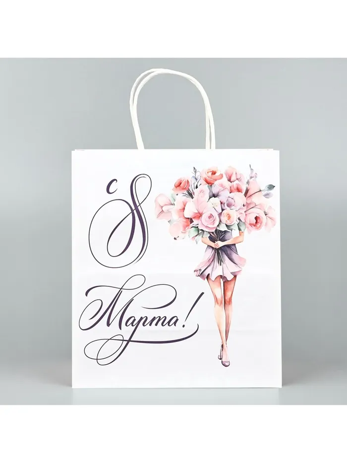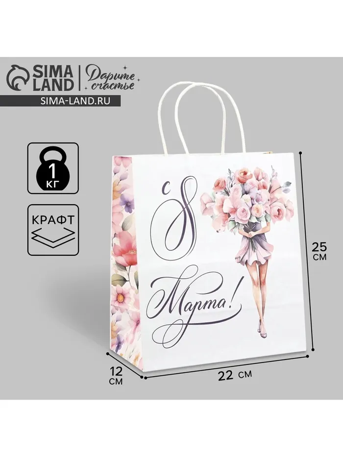 Пакет подарочный крафт «8 марта», цветы, 22 х 25 х 12 см — Характеристики