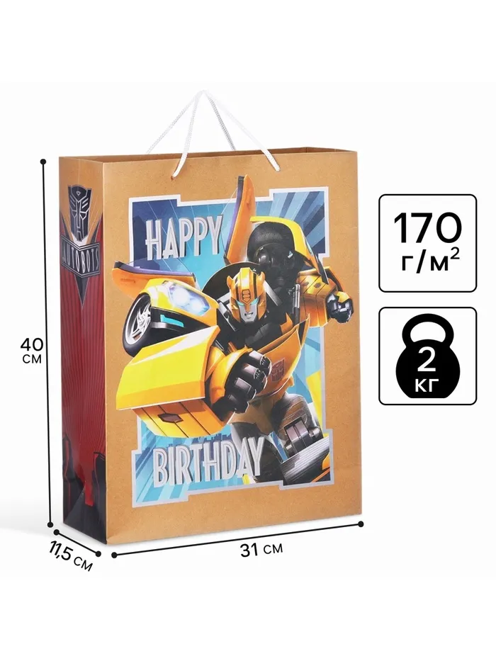 Пакет подарочный крафт Happy Birthday, 40×31×11.5 см, Трансформеры — Характеристики
