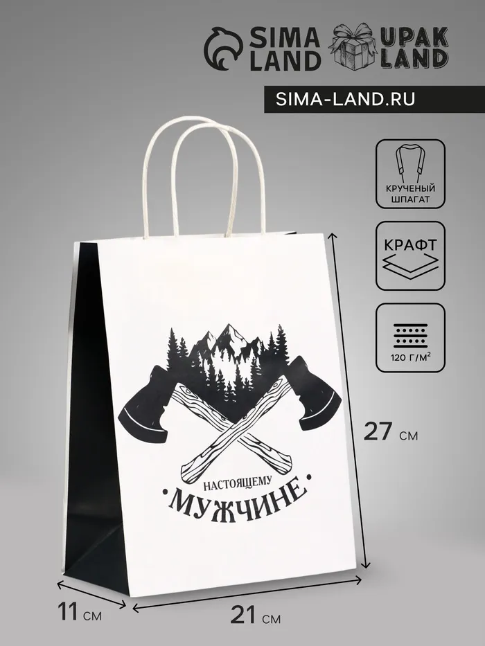 Пакет подарочный крафт «Настоящему мужчине», 21×11×27 см — Характеристики
