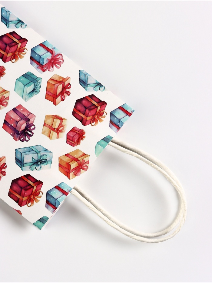 - Ручки из кручёного шпагата добавляют упаковке удобства и стиля.