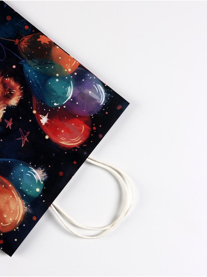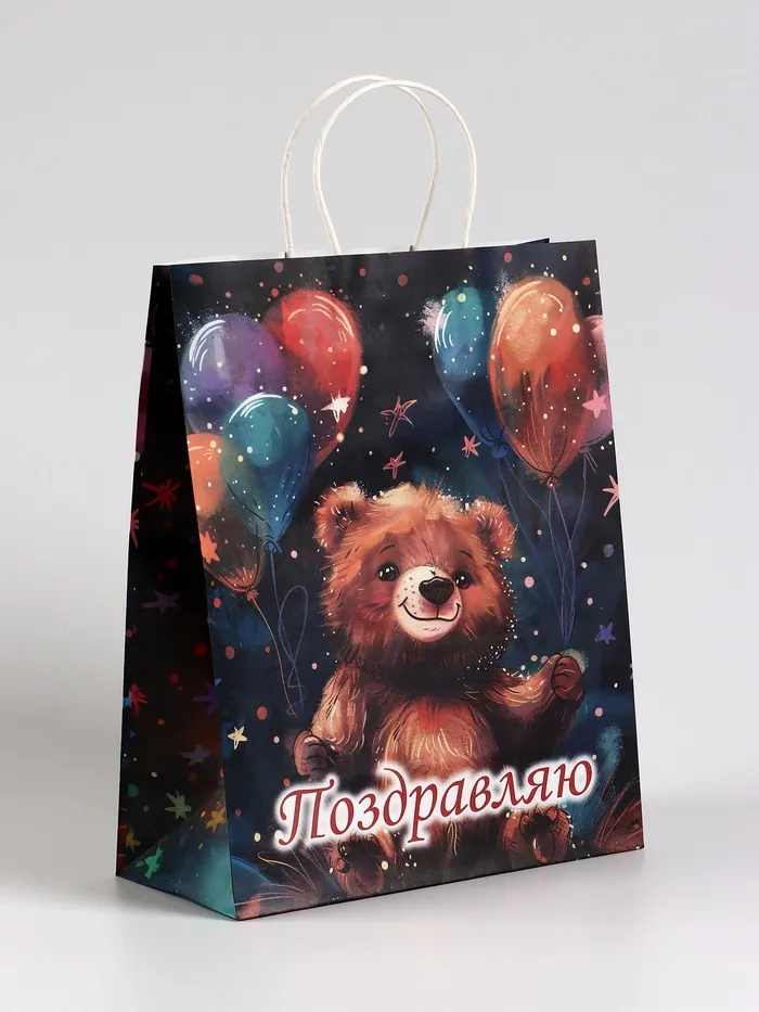 Крафт-пакет «Поздравление от мишки» — это яркая и праздничная упаковка для подарков, которая создаёт атмосферу радости и веселья. Его дизайн с изображением мишки, воздушными шарами и поздравительными надписями идеально подходит для Дня рождения или других торжеств. Прочная бумага плотностью 120 г/м² обеспечивает надёжность и сохраняет презентабельный вид.