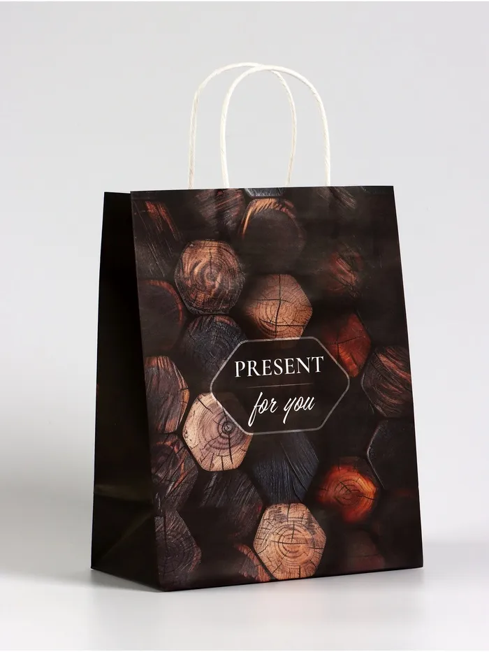 Подарочный крафт-пакет «Present» — это стильное и экологичное решение для упаковки подарков мужчинам на 23 Февраля или другие праздники. Его лаконичный дизайн с деревянным принтом и надписями подчеркивает сдержанность и индивидуальность, а натуральная крафт-бумага добавляет упаковке природной эстетики.