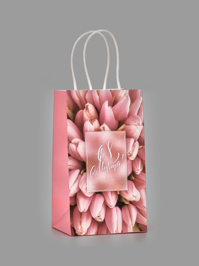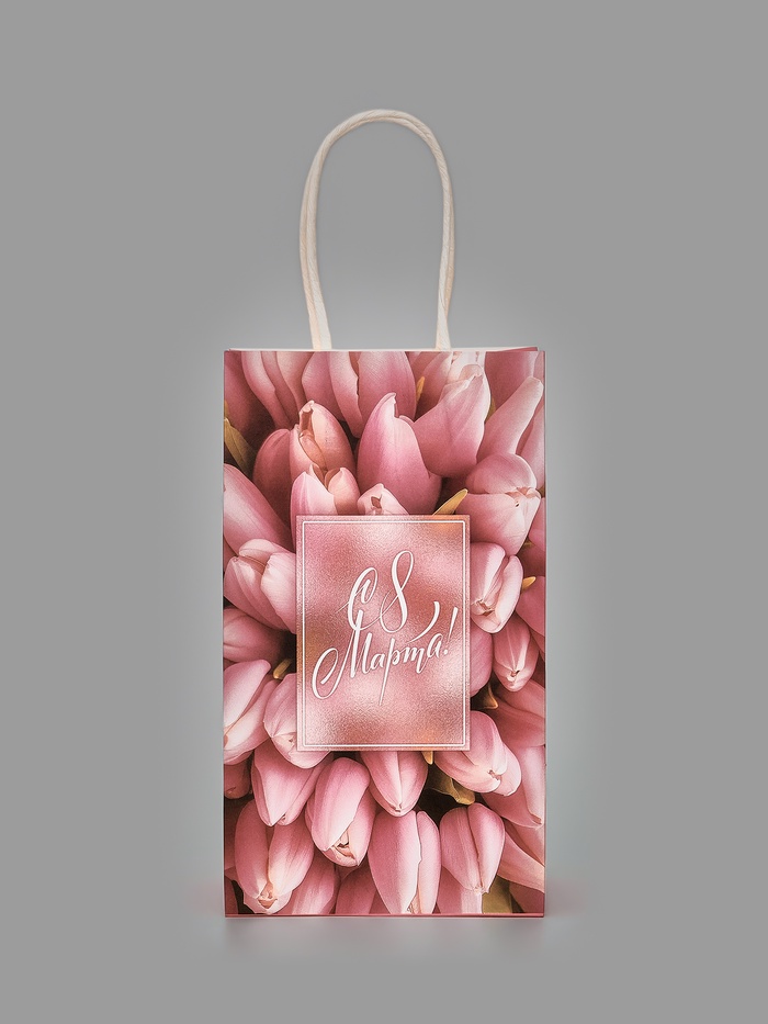Пакет подарочный крафт «С 8 марта», 12×21×9 см — Характеристики