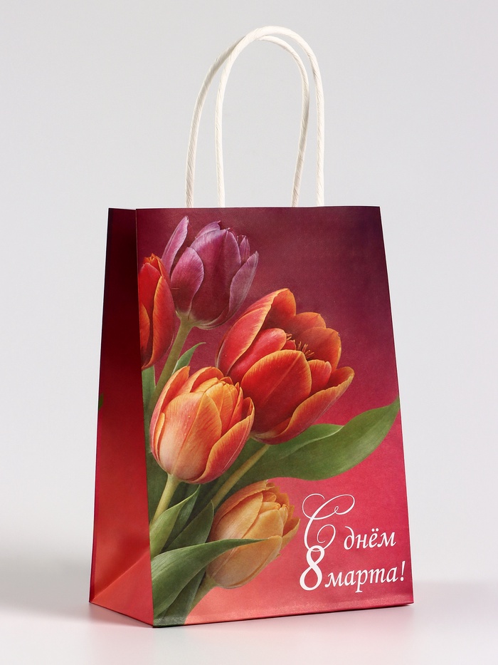 Пакет подарочный крафт, «С 8 Марта!», 15×8×21 см — Характеристики