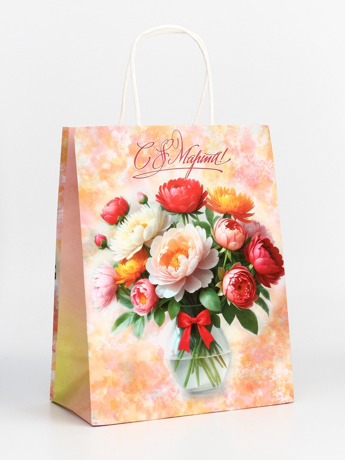 Пакет подарочный крафт «С 8 Марта!» 21×11×27 См