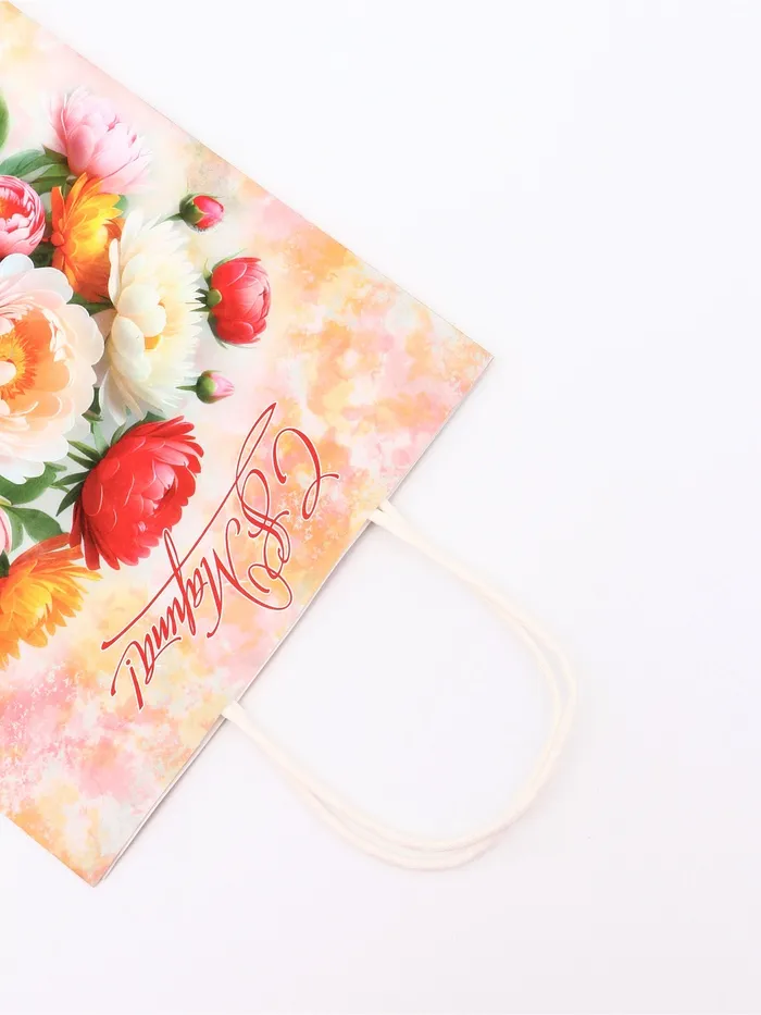 Этот пакет крафт на 8 Марта создан специально для того, чтобы сделать ваш подарок девушке ещё более особенным. Плотность бумаги 120 г/м² гарантирует прочность и надёжность пакета, позволяя безопасно переносить даже хрупкие и ценные вещи.