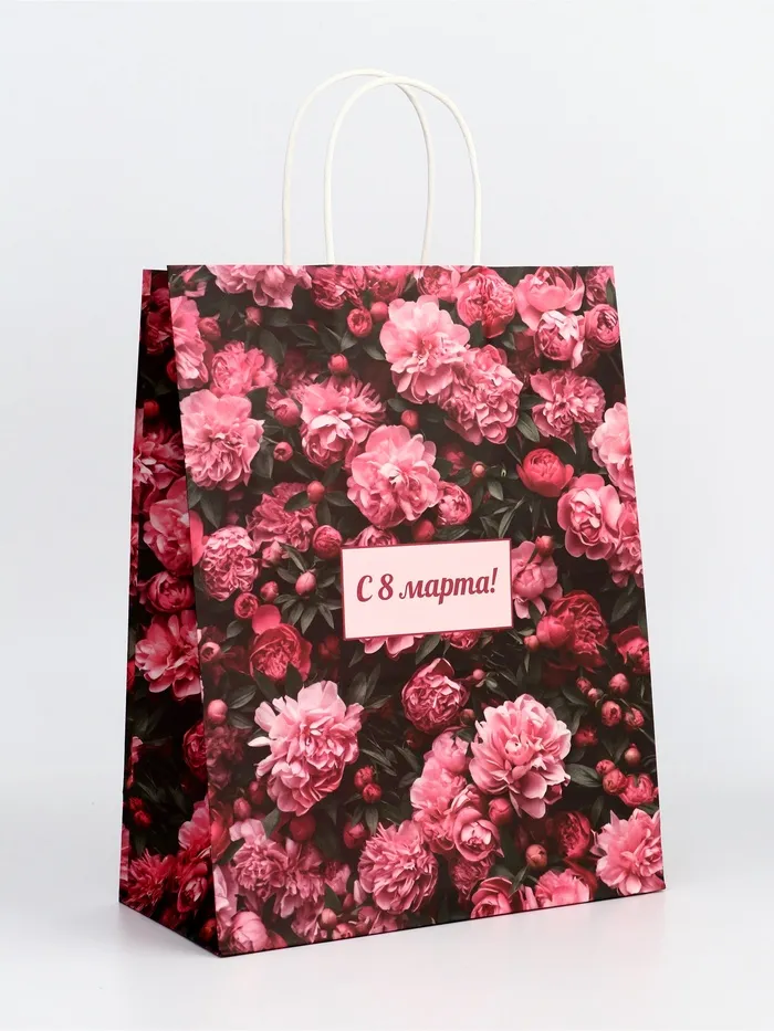 Пакет подарочный крафт "С 8 Марта" 25 х 12 х 32 См