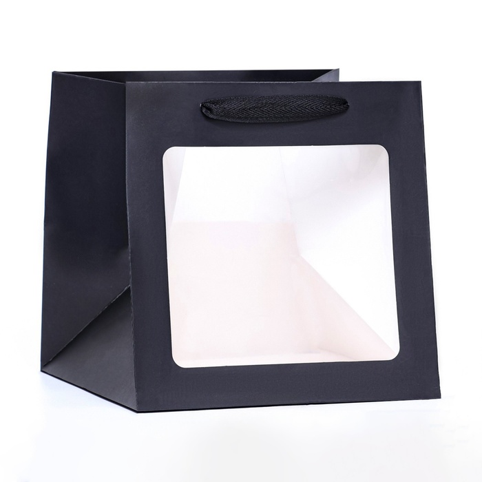 Пакет подарочный, крафт, с окном, «чёрный», 20×20×20 см — Характеристики