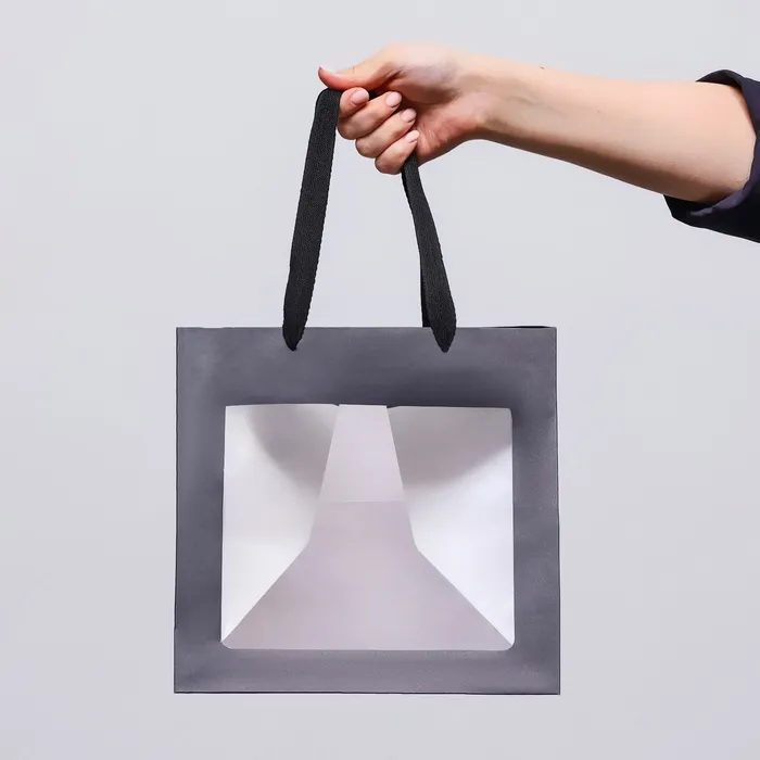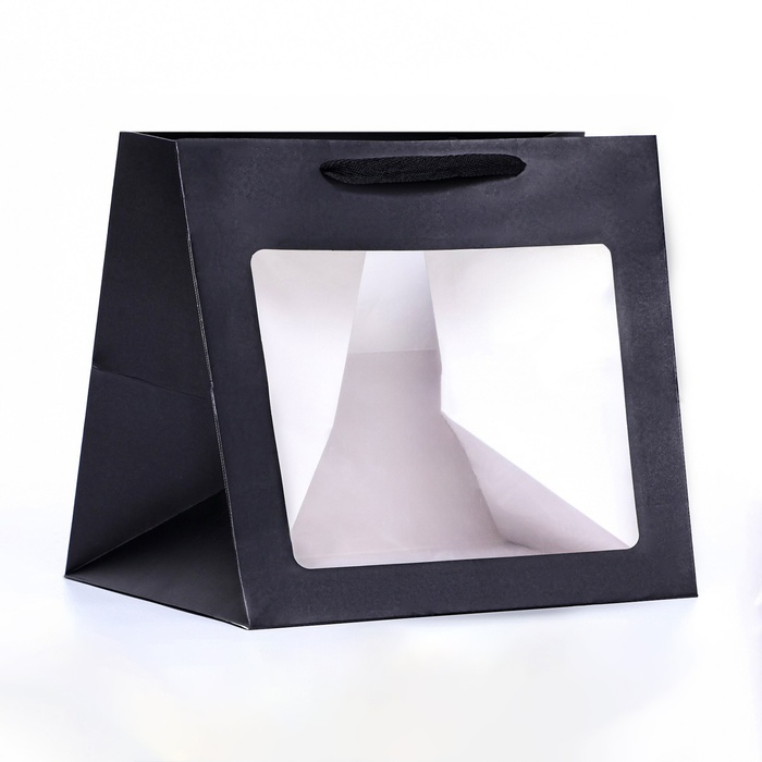 Пакет подарочный, крафт, с окном, «чёрный», 25×25×25 см — Характеристики