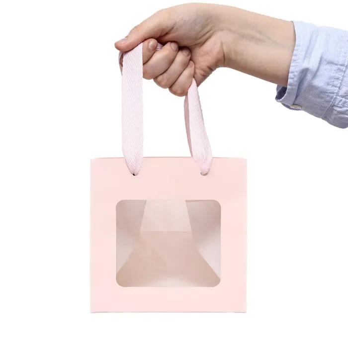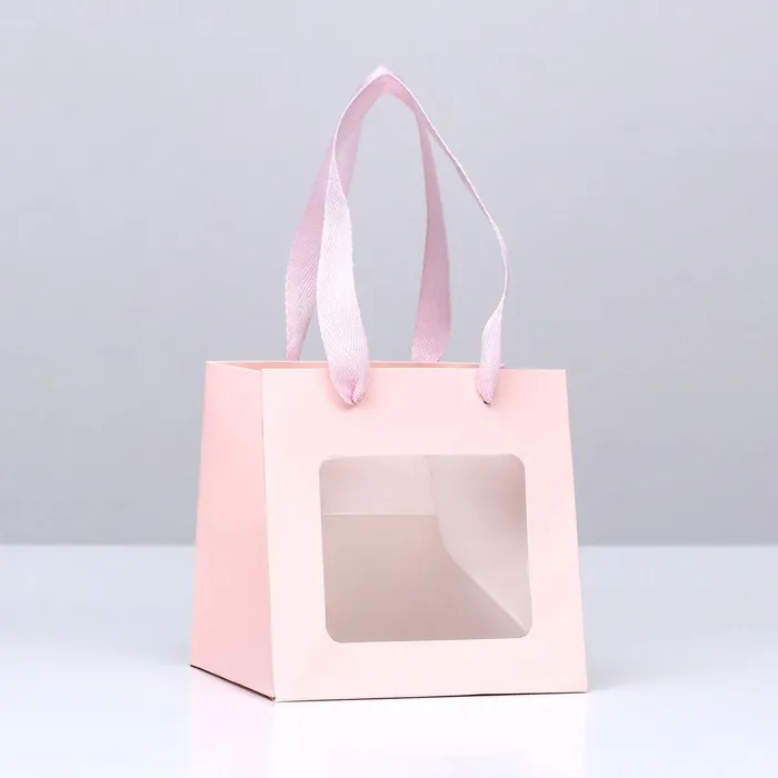 Пакет подарочный, крафт, с окном, «Розовый», 15×15×15 см — Характеристики