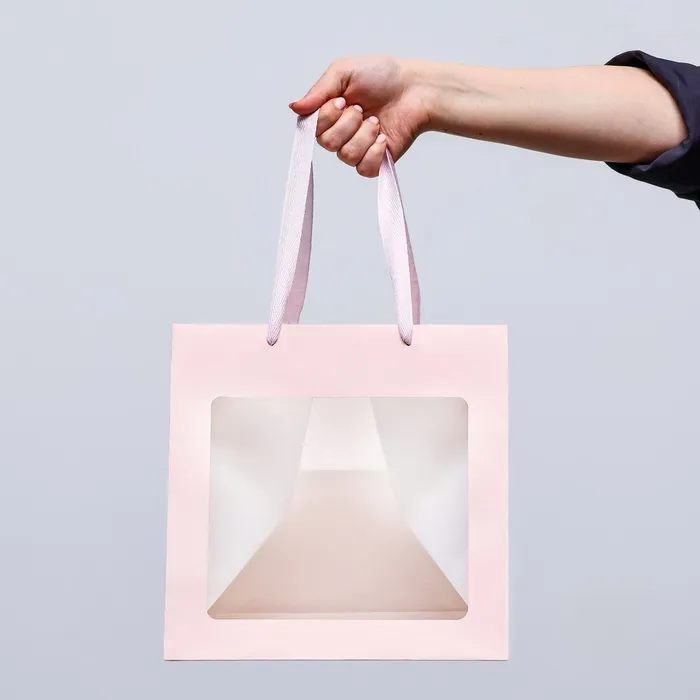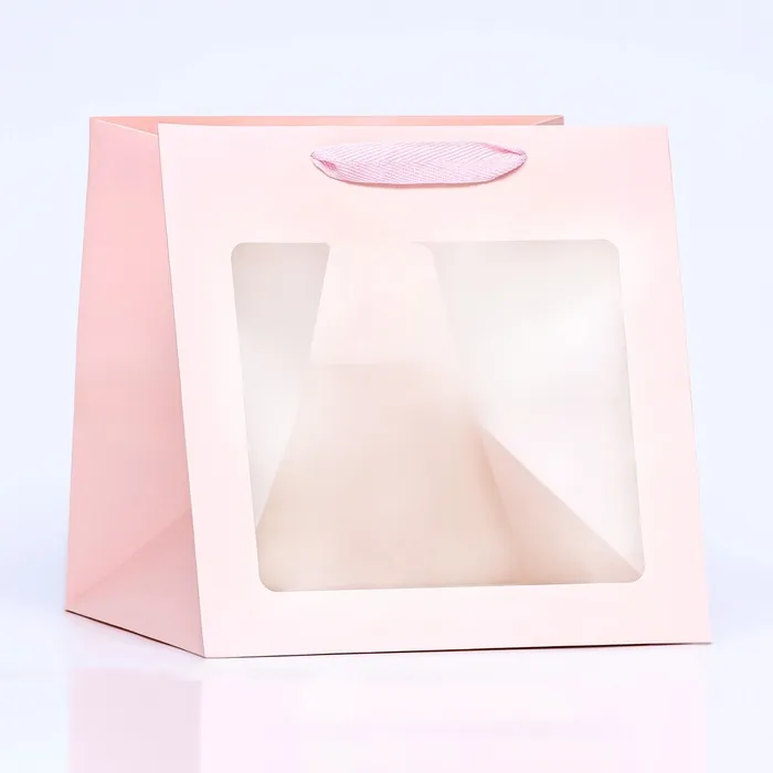 Пакет подарочный, крафт, с окном, «Розовый», 25×25×25 см — Характеристики