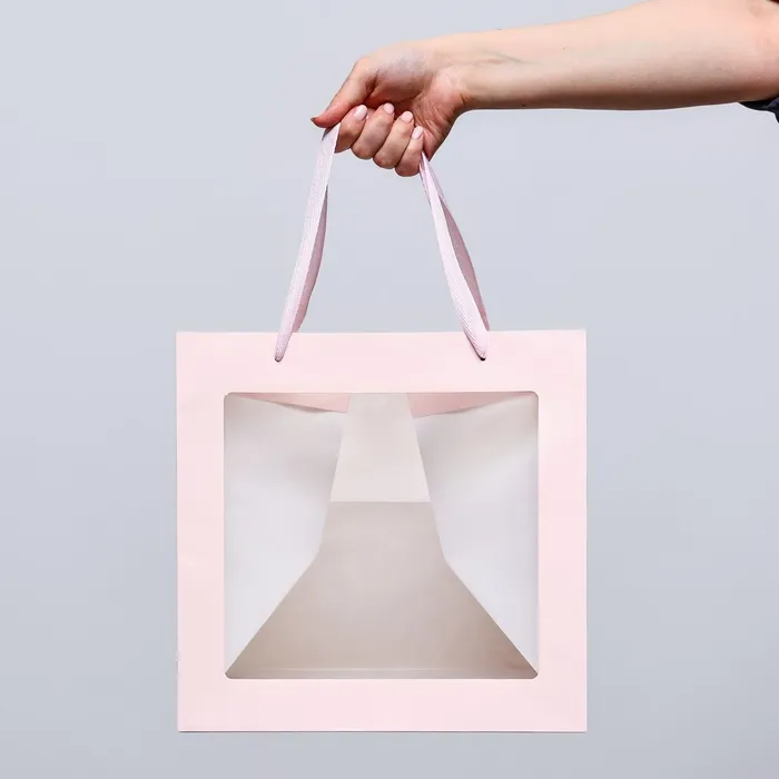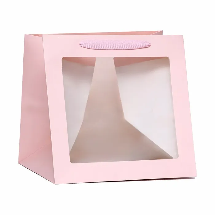 Пакет подарочный, крафт, с окном, «Розовый», 30×30×30 см — Характеристики