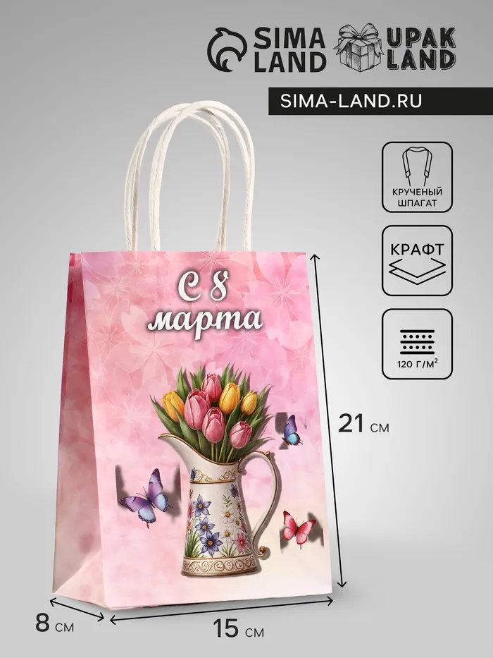 Пакет подарочный крафт, «С Женским Днём» 15×8×21 см — Характеристики