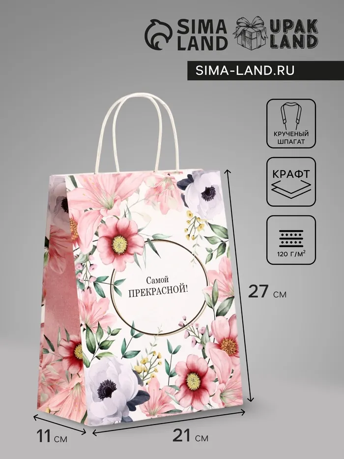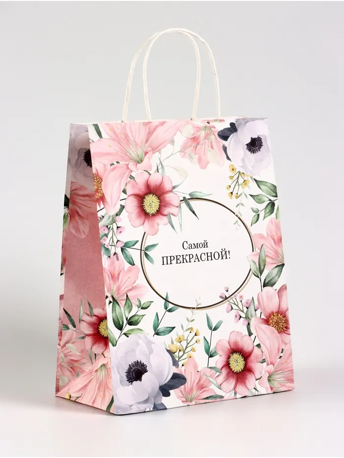 Пакет подарочный крафт, «Самой прекрасной», 21×11×27 см — Характеристики