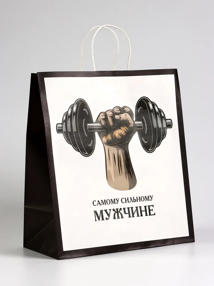 Пакет подарочный крафт «Самому сильному», 32×17.5×37 см — Характеристики