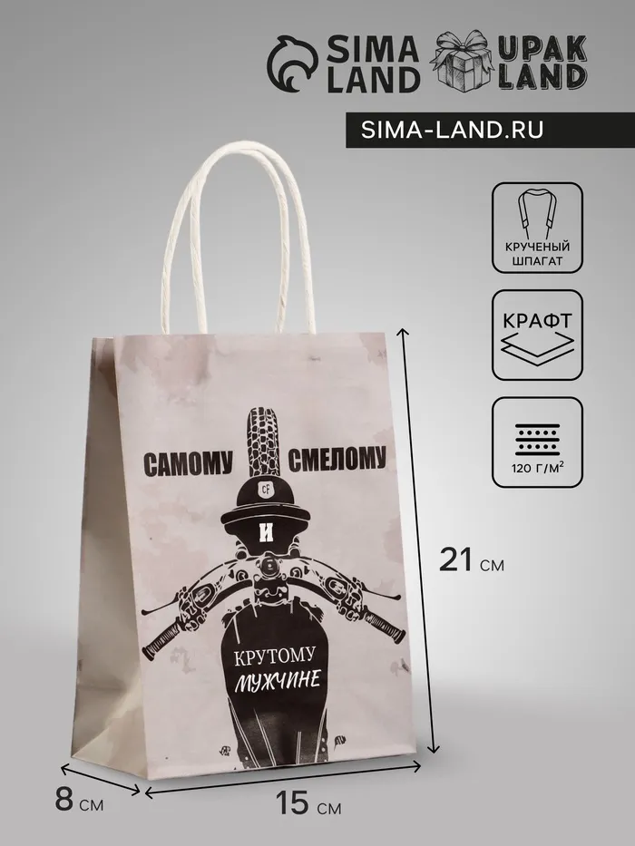 Пакет подарочный крафт «Самому смелому», 15×8×21 см — Характеристики